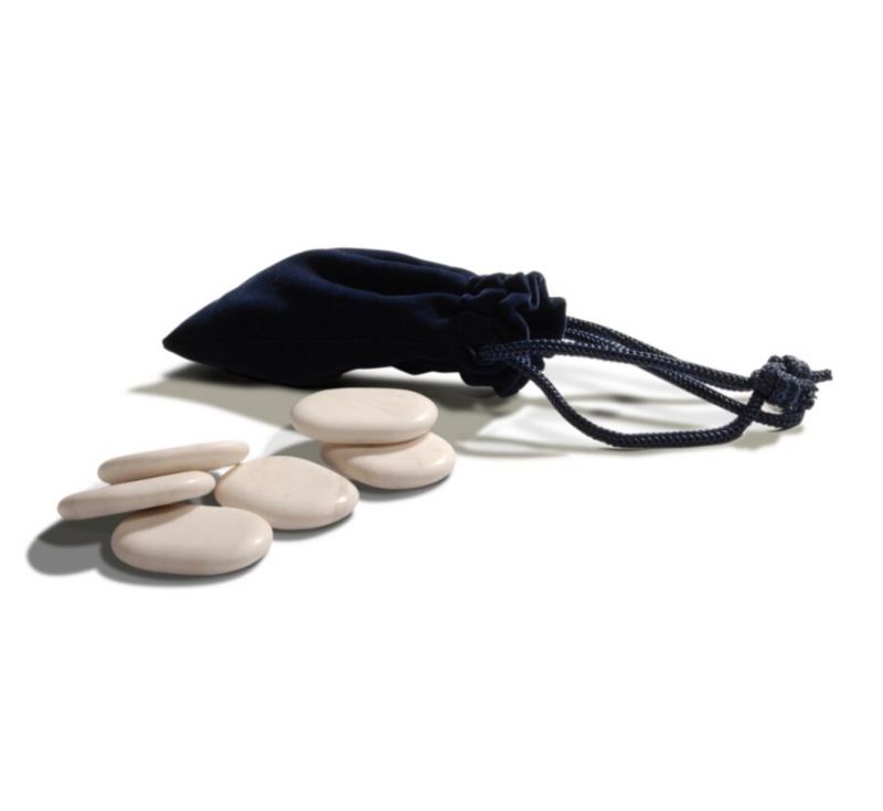 - The six small ovular marble stones, for cool stone massage around the facial area after hot stone massages, help to arouse the client after a hot stone massage.